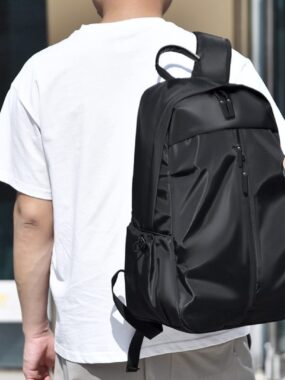 Stylish solid color backpack with multiple pockets, anti-splash fabric, and anti-scratch durability. Perfect for school, work, and travel.