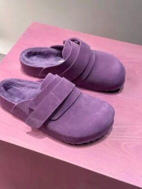Stay warm and stylish with these Womens Violet Fully Curly-Fleeced Clogs. Soft, cozy, and lightweight, they offer plush comfort and a vibrant look for indoor or outdoor wear.