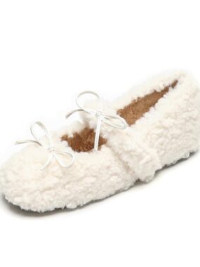 Add charm and comfort to your look with these Womens Curly Fur Mary Janes featuring two adorable bows. Soft, cozy, and stylish, theyre perfect for casual wear or lounging at home.