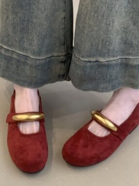 Elevate your everyday style with these Womens Genuine Suede Ballerinas featuring a chic gold ornament strap. Soft, luxurious, and effortlessly elegant, they deliver all-day comfort with timeless sophistication.