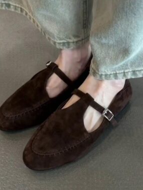Discover timeless comfort with these Womens Stitched T-strap Brown Suede Loafers, designed with soft suede material and classic stitching for an effortlessly stylish everyday look.