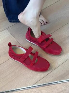 Experience everyday comfort and style with these Womens Real Suede Double Velcro Sneakers Ballerinas, blending sporty ease with a chic ballerina silhouette.