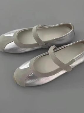 Step out in style with these Womens Material-Patterned Silver Strap Ballet Sneakers. Blending sporty comfort with chic ballet-inspired details, they feature a shimmering silver strap and a stylish patterned finish.
