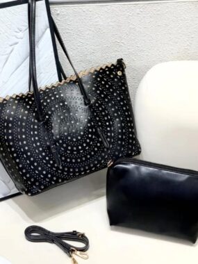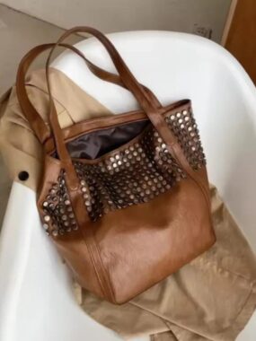 Carry your essentials in style with this Womens Large Shoulder Tote featuring bold silver studs, spacious design, and durable construction for everyday use.
