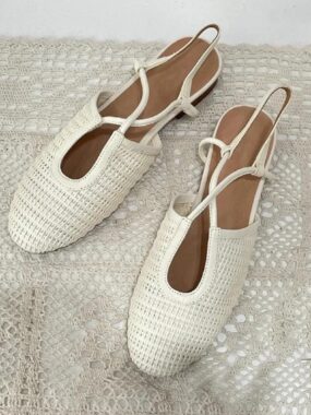 Step into effortless elegance with these Womens Woven Real Leather Criss Cross Flats, featuring soft genuine leather and a breathable woven design for all-day comfort.