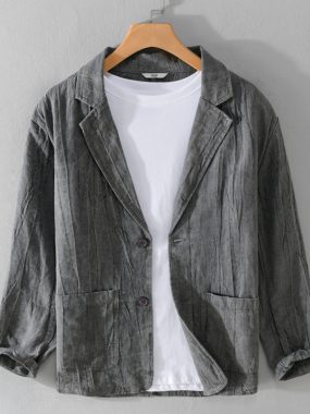 Elevate your seasonal wardrobe with the Mens Autumn Ramie Cotton Blended Business Casual Striped Blazer. Lightweight, breathable, and refined, this high-quality blazer offers a sophisticated striped design ideal for work, meetings, and stylish everyday wear.