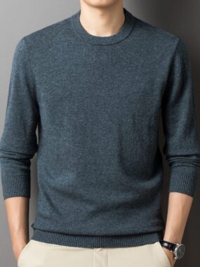 Experience premium warmth and comfort with this Mens Real Wool Ribbed Crew Collar Knit Sweater. Soft, durable, and stylishperfect for cold-weather layering.
