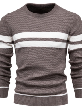 Elevate your casual style with this Mens Wide Striped Round Neck Pullover. Comfortable, versatile, and trendy, its perfect for everyday wear, layering, or relaxed outings.