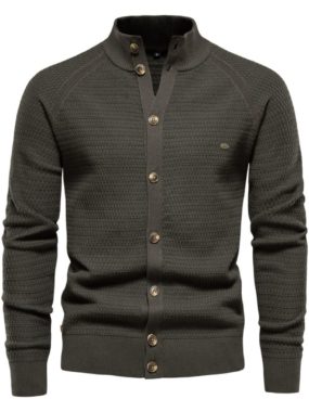 Stylish and warm knitted cardigan jacket for men, featuring a solid color design perfect for autumn and winter wear.