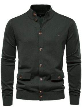 Warm and stylish high quality cotton cardigan with side pocketsperfect for layering during autumn and winter.