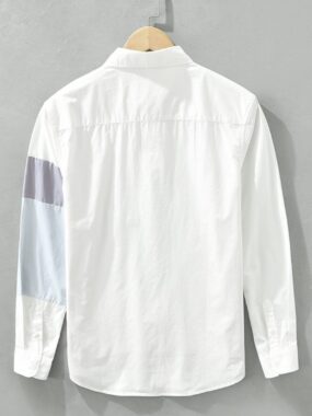 A timeless long sleeve shirt with subtle white contrast detailingperfect for refined summer style.