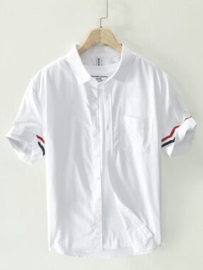 Short Sleeve Shirt with Striped Trims Sleeves