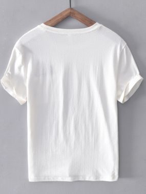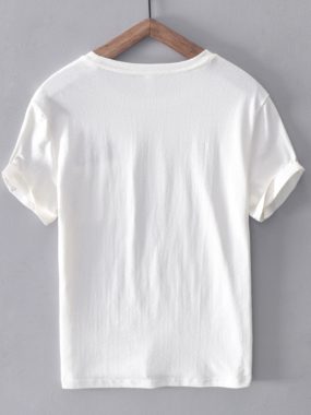 Stay cool and stylish with this Men’s Linen Cotton Embroidered T-Shirt breathable fabric meets elegant detailing.