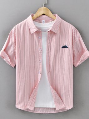 Breathable pure cotton striped shirt with short sleevesperfect for casual summer style.
