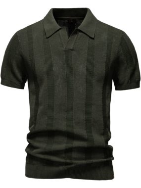 Stay cool and stylish with this mens summer patterned knitted polo T-shirtbreathable, lightweight, and ideal for smart-casual wear.