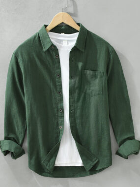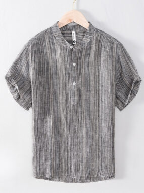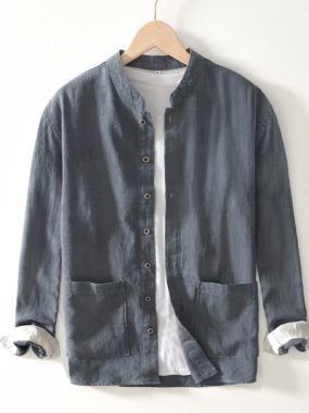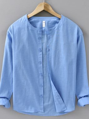 Stylish and comfortable, this Long Sleeve Cotton Linen Blend Mao Collar Men’s Shirt combines breathable fabric with a modern, minimalist design. Perfect for casual or semi-formal occasions.