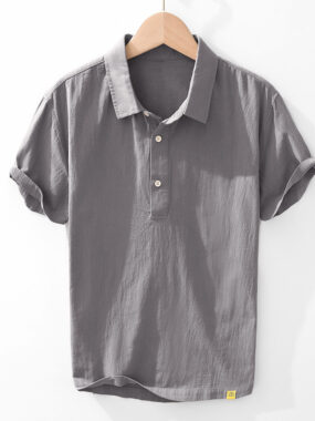 Summer Short Sleeve Polo Collar Cotton Ramie Shirt