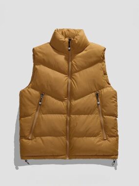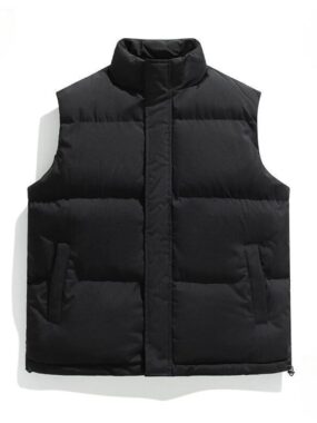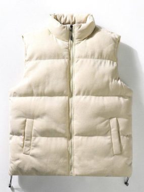 Stay warm and stylish with this thick, cotton-filled puffer vestperfect for cold-weather layering.
