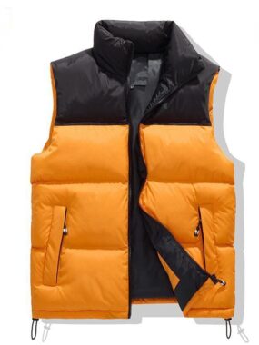 A stylish contrast color vest filled with warm cottonperfect for layering in cool weather.