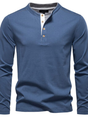 Stay comfortable and stylish this season with this Fall and Winter Lightweight Contrast Color Henley Collar Casual Long Sleeve T-Shirt. Made from 100% pure cotton, its perfect for layering or wearing on its own.