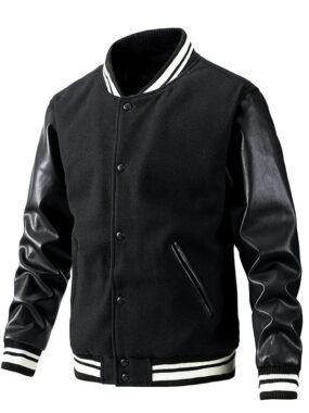 Stay stylish and edgy this season with the Mens Fall Winter Jersey Striped Jacket featuring PU leather sleeves. Perfect for casual and smart-casual occasions, it combines warmth, comfort, and modern street-inspired design.