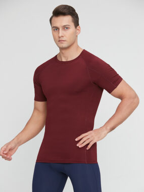 Fitted quick-dry gym t-shirt with durable 6-thread stitching, perfect for intense summer workouts.