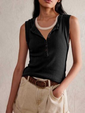 Womens boho unfinished ribbed sleeveless top featuring a textured design and raw-edge detailperfect for casual wear, layering, and effortless free-spirited style.