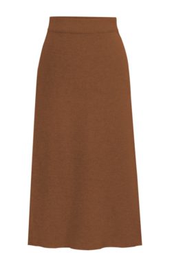 Stylish womens faux suede A-lined midi skirt offering a flattering silhouette with soft texture and versatile wear.