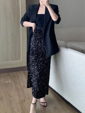 Shine with confidence in this Womens High Waist Sequin Mid-Length Skirt. Designed to flatter your figure, it combines a glamorous sequin finish with an elegant silhouette perfect for parties and special occasions.