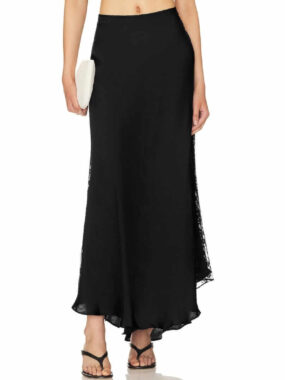 Elegant womens lace and slit maxi flouncy skirt featuring a flowy silhouette and delicate detailsperfect for special occasions, evening wear, or chic daytime styling.