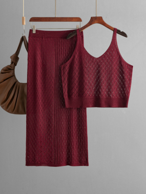 Show off your chic side with our Womens Patterned Knit Thin Strap Top and Straight Skirt Set. Featuring a soft knit texture and stylish pattern, this elegant two-piece outfit offers comfort and sophistication for any occasion.