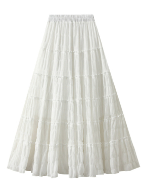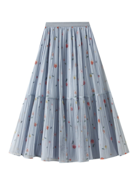 Make a statement with this tiered pleated tulle skirt reversible with floral flair on one side and classic plain elegance on the other. Two styles, one stunning skirt!