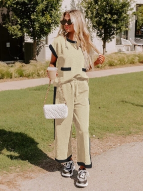 Stay comfy and coordinated with our Color Blocked Pocketed T-shirt and Pants Set sporty, stylish, and perfect for lounging or casual days out.
