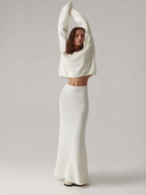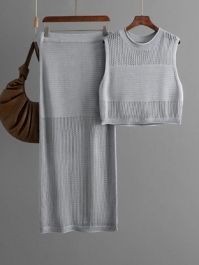 Turn up the style with our Womens Thin Knit Cutout Long Sleeve Top and Skirt Set. Crafted from soft, breathable knit fabric, this trendy two-piece outfit blends comfort and allure perfect for evenings out or chic daytime looks.
