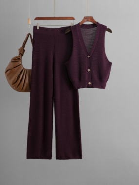 Upgrade your wardrobe with our Womens Knitted Buttoned Vest with Wide Pants. This chic two-piece set combines cozy knitwear with modern tailoring perfect for casual days, office wear, or elegant outings.