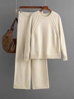 Stay cozy and coordinated in this soft knitted set featuring a warm sweater and matching pants for effortless style.