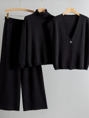 Elevate your everyday style with our Casual Everyday Autumn, Winter, and Spring 3-Piece Knitted Set. Featuring a mid-length long sleeve cardigan, a turtleneck sleeveless top, and loose-fit lounge pants, this set blends comfort, versatility, and seasonal chic.
