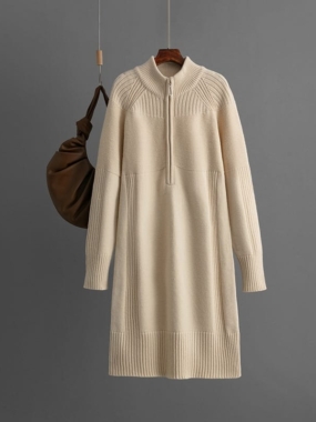 Cozy thick knitted midi dress with a front zipper for a stylish, modern look.