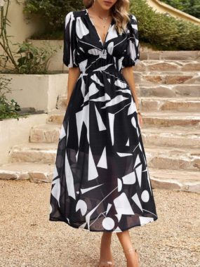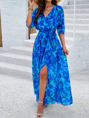$34Elegant women’s summer floral V-neck long dress, perfect for casual outings or beach days with a breezy, flowy fit.