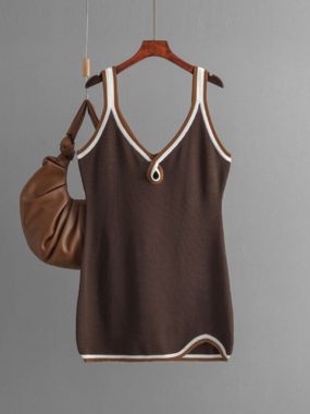 $19Chic and figure-flattering knitted short dress with a v-neckline and stylish hollow details.