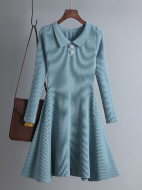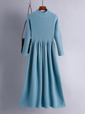 $33Warm and refined, this knitted thick polo collar midi dress brings classic elegance to cold-weather dressing.