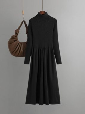 $36A sleek knit essential this turtleneck top paired with a midi skirt offers cozy sophistication for colder days.