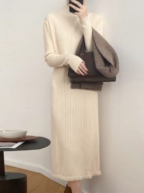 $35Stay warm in style with this long sleeve knitted midi dress a timeless staple for autumn and winter.
