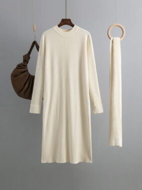 $42Bundle up in cozy elegance with this winter knit midi dress, complete with a thick matching scarf.