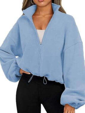 Stay warm and stylish with our Womens Autumn/Winter Fleeced Casual Zip-Up Jacket featuring a stand-up collar. Perfect for layering, casual outings, or cozy seasonal wear.