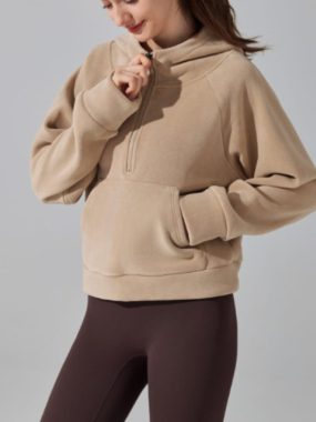 Stay warm and casual with our Womens Fall Winter Solid Color Hooded Half-Zip Thick Fleeced Sweatshirt featuring kangaroo pockets. Perfect for cozy layering and everyday seasonal style.