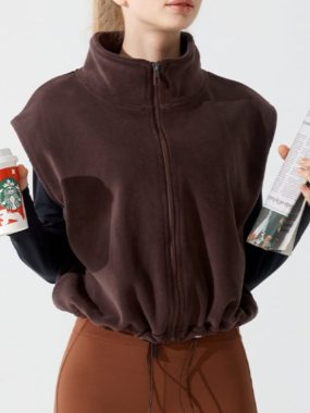 Stay warm and stylish with our Womens Fall Winter Fleeced High Collar Zip-Up Sleeveless Vest, featuring adjustable drawstrings on the hem. Perfect for layering and cozy seasonal outfits.