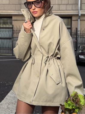 Elevate your cold-weather wardrobe with the Fall Winter Pure Cotton Stand-Up Collar Drawstring Belt High-End Coat a sophisticated blend of warmth, comfort, and timeless elegance.