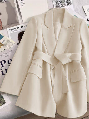 Stay warm and stylish with the Womens Autumn Winter Lined Jacket, featuring convenient side pockets, a fabric belt, and a cozy, tailored design perfect for seasonal layering.
