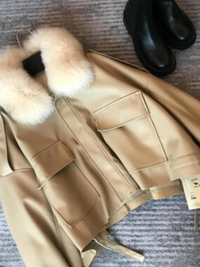Stay warm and fashionable with the Autumn/Winter Fleece-Lined Thick Faux Leather Short Jacket, featuring a detachable faux fox fur collar for versatile style and cozy comfort.